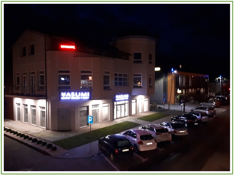 Wszystkie witryny są duże i dobrze widoczne. Poza tym, nieruchomość jest częściowo wysunięta co daje możliwość przestrzennej formy reklamy. Jest to doskonały punkt ze względu na dobry dojazd, widoczność i bezpośrednie sąsiedztwo obiektów handlowych oraz budynków mieszkalnych.