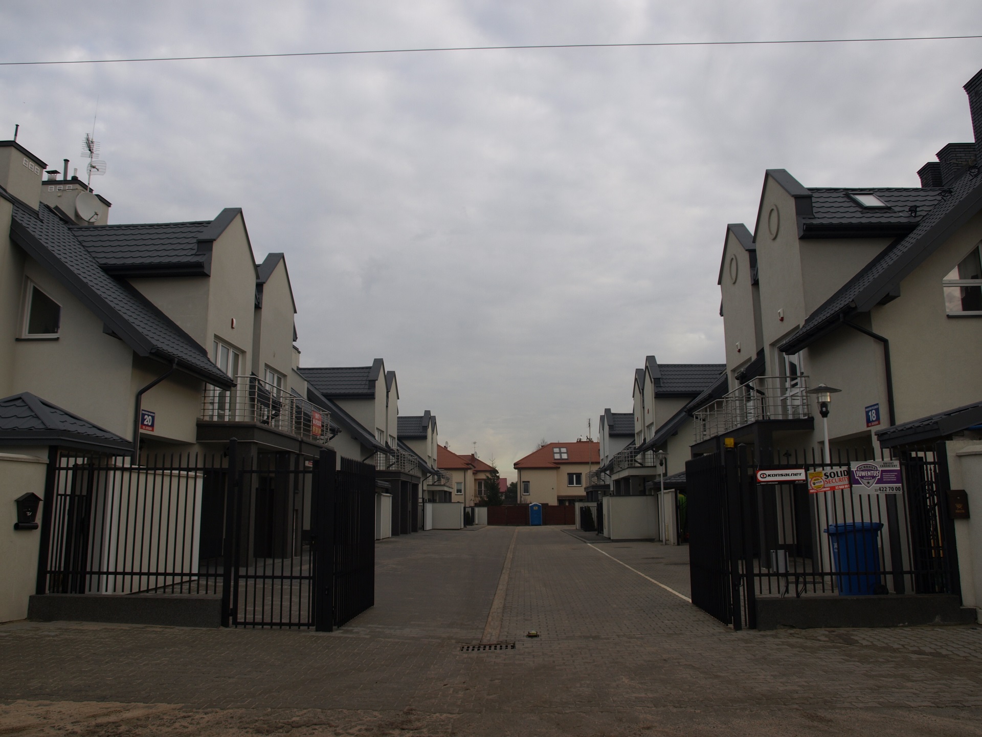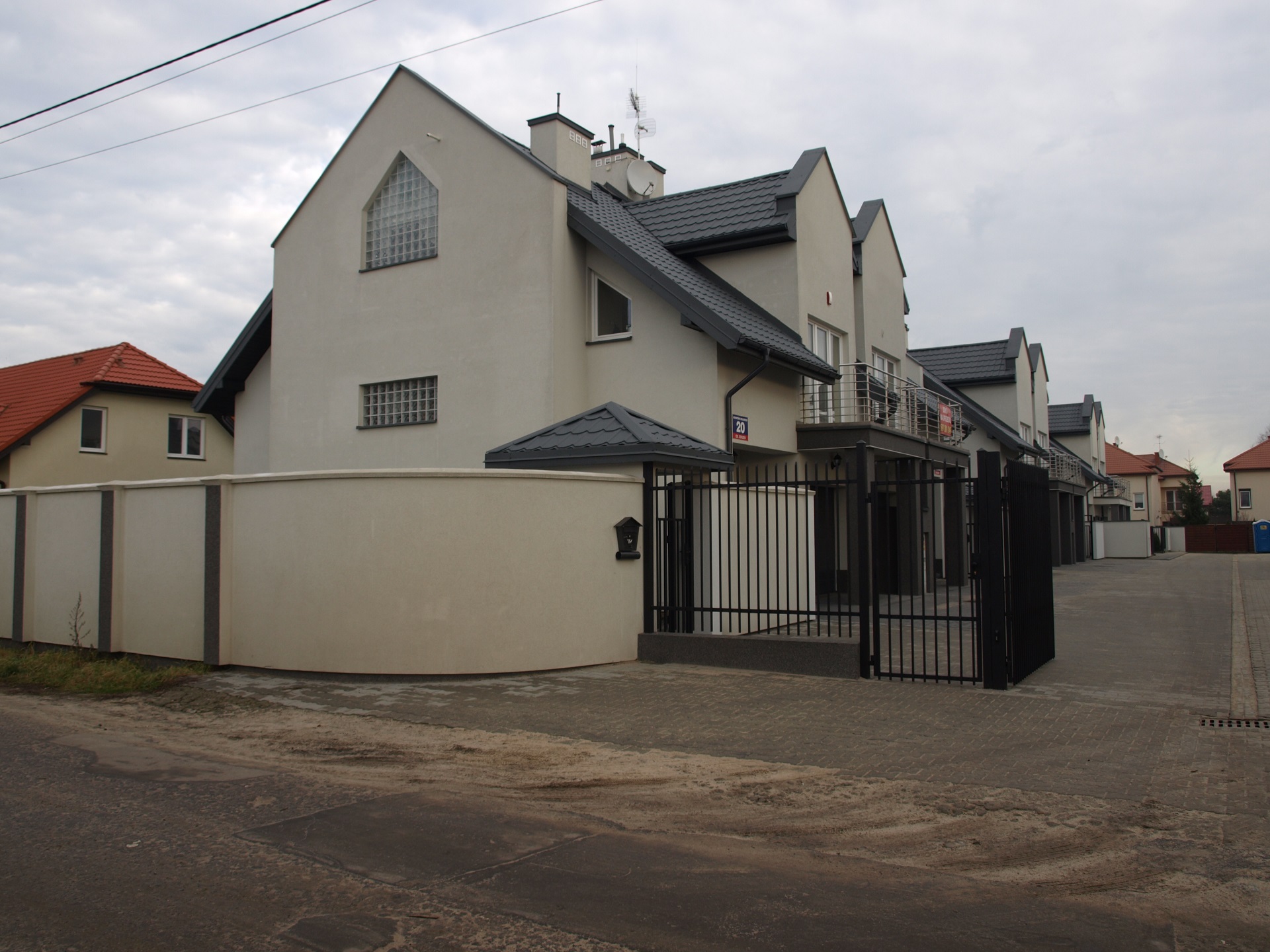 - Ogrodzenie osiedla od strony ulicy zewnętrznej murowane z bramą wjazdową i furtką
