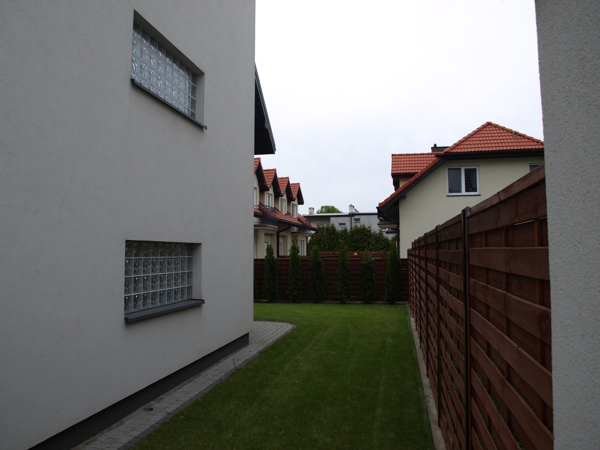 - Chodnik przed wejściem do budynku, podjazd przed garażem oraz droga wewnętrzna osiedla wykończone kostką betonową.