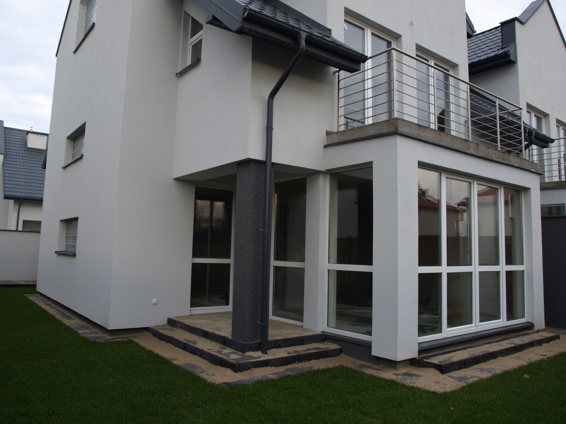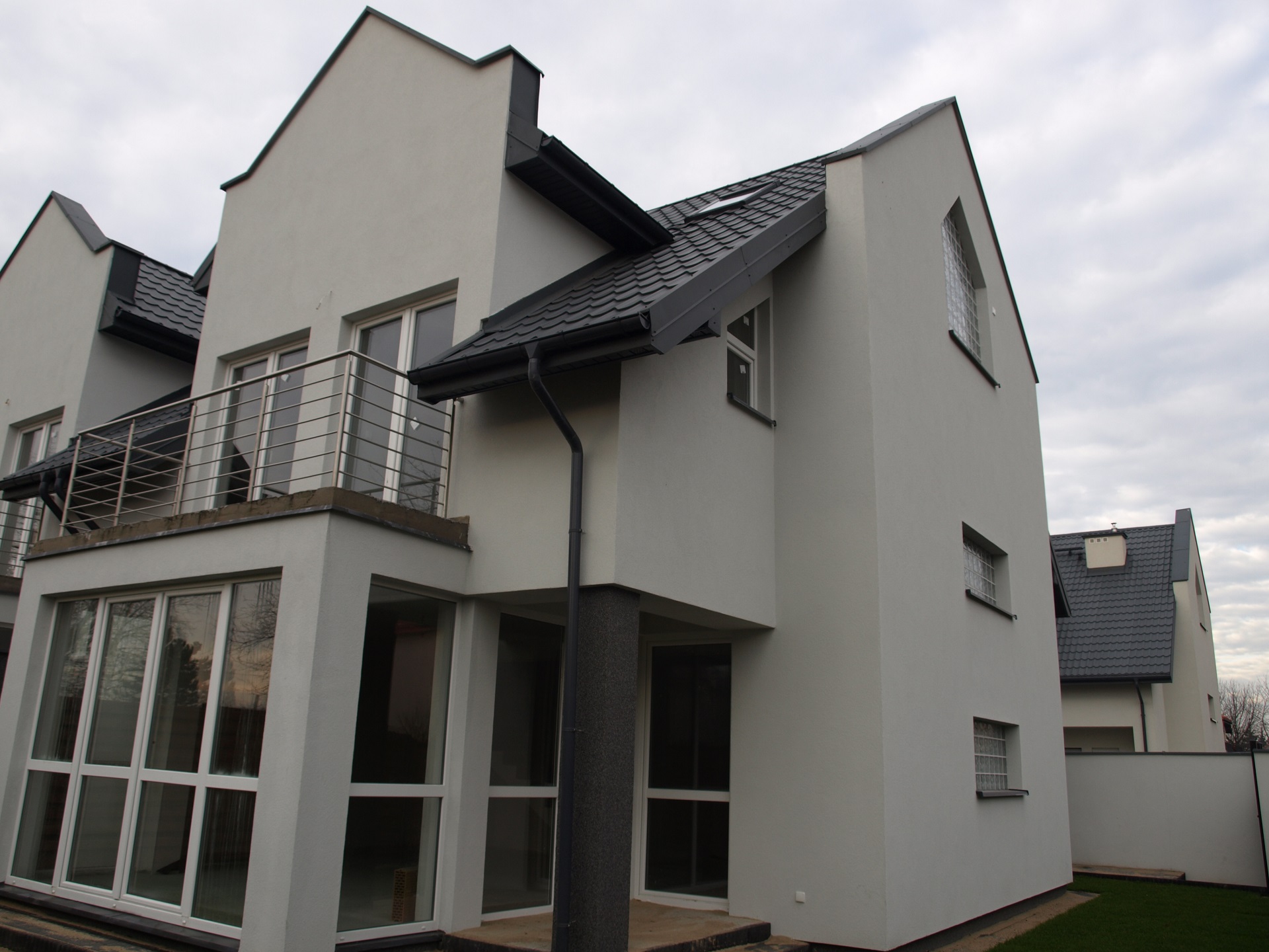 - Budynek mieszkalny w zabudowie bliźniaczej - niepodpiwniczony, piętrowy z poddaszem użytkowym, z wewnętrznym garażem, z tarasem i balkonami.